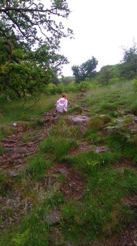 After leaving the woods you’ll cross a bridge then head up some steps. At the top of the steps the path splits; take the left one which will take you to the summit of Todd Crag (there are several possiblities and we found no obvious marker so we chose the highest point).