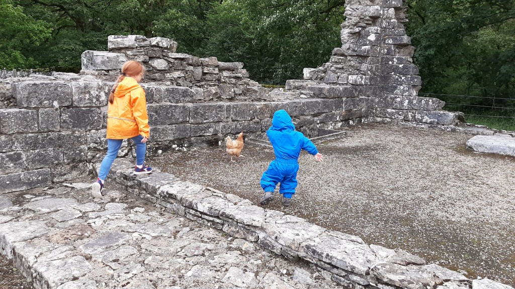 After parking in the small English Heritage car park (space for about 5 cars at a cost of £2 for the day) at postcode CA10 3NB, we followed the footpath sign up and over the river and to the ruins. They are ruggedly majestic, and still just about standing over 500 years later! The the kids had the most fun playing hide and seek, laying in the tombs, following the chickens and generally enjoying the open air and opportunity to play.